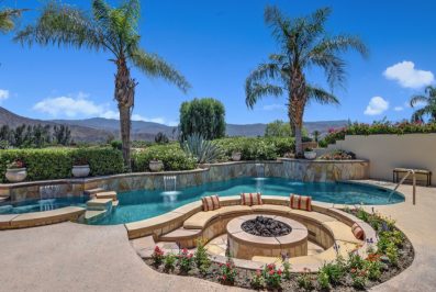 Stunning Southern views in Toscana CC! Located on an elevated premium lot overlooking gorgeous mountains, glistening water and a one-of-a kind sunken fire pit for entertaining. Offered furnished with breathless views upon entry. This open floor plan boasts four bedrooms, four and a half baths including a detached casita. Impressive flooring, marble countertops, and built-in cabinetry. This unique Pebble Tec pool offers soothing spillways including stone walls, fire pit, and built-in BBQ. Truly a remarkable home!